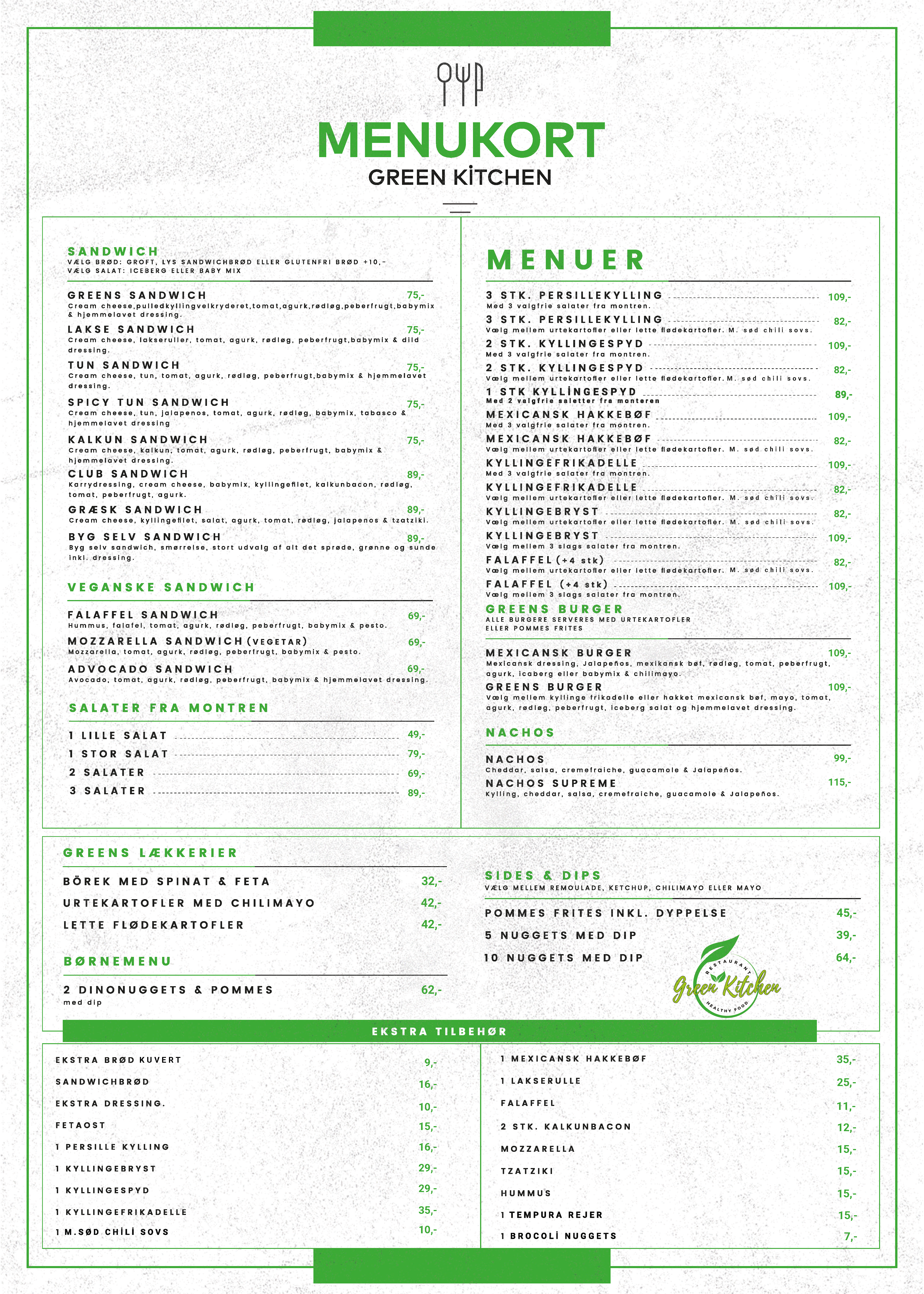 Iceberg, mexicansk dressing, Jalapeños, mexikansk bøf, rødløg, tomat, peberfrugt, agurk, babymix & mayo.